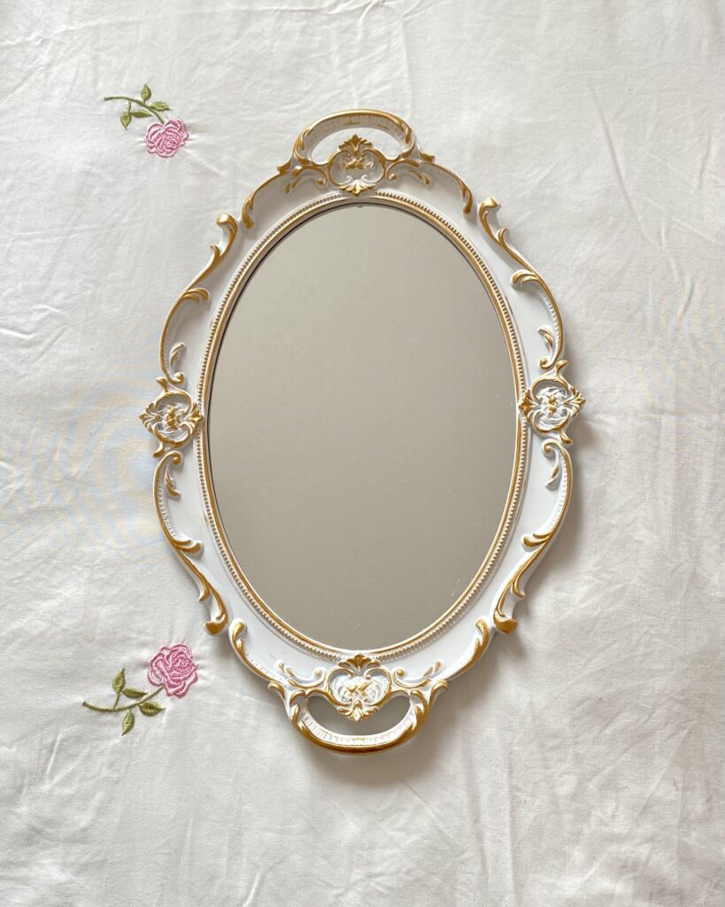 I adore this antique decorative wall mirror—it instantly makes my room feel more alive and elegant. The delicate details and vintage charm add the perfect coquette touch, bringing a sense of timeless beauty to my bedroom.