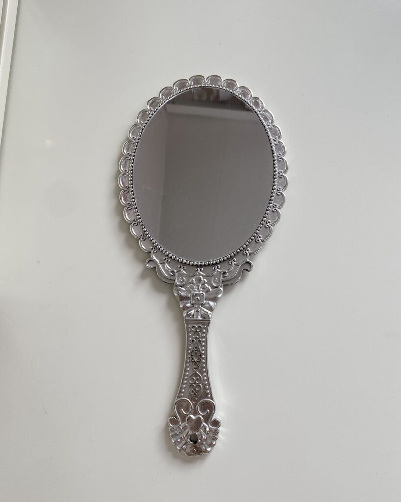 I love how this delicate silver mirror adds the perfect vintage touch to my vanity. It’s elegant, charming, and makes even simple makeup moments feel a little more special.