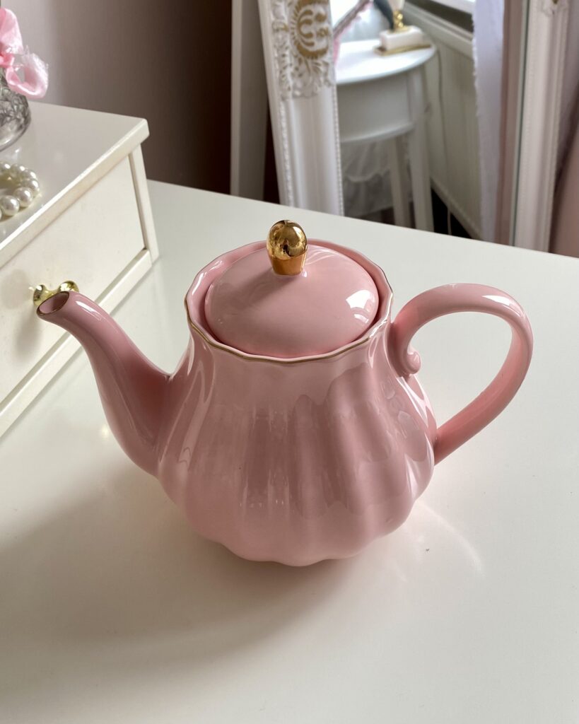I love making tea while getting ready at my vanity, which makes this dreamy pink ceramic teapot feel like the perfect little decor piece. It’s elegant, feminine, and adds a touch of magic to every tea time.